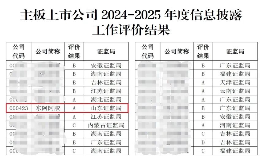 近日,深交所公布了2024—2025年度主板上市公司信息披露工作评价结果。东阿阿胶凭借科学规范的上市公司治理体系、立体多元的投资者关系运维、精准高效的信息披露以及持续稳定的投资者回报,连续第三次荣获最高等级“A”级评价。