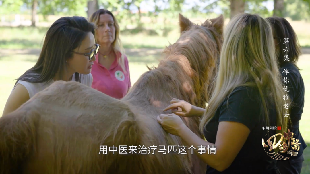 更令人称奇的是,中医诊疗的应用被扩展到更广泛的领域。镜头记录了兽医妮可为赛马实施针灸治疗的故事。赛马因高强度训练常出现肌肉劳损、关节疼痛等问题,而针灸疗法能有效缓解它们的疼痛,促进运动机能恢复。这种跨越物种的中医应用,不仅展现出中医药的使用场景,也开拓了传统医学的应用边界。