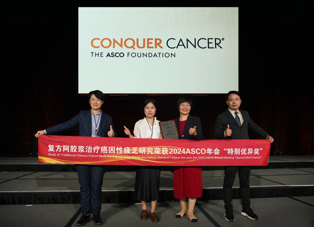 聚焦复方阿胶浆大品种战略研发,公司系统开展了大规模、多中心中医药治疗癌因性疲乏的循证医学研究,充分证实了复方阿胶浆在治疗癌因性疲乏方面的临床应用价值。基于该研究成果,中华中药学会发布国内首个治疗癌因性疲乏的单一中成药应用共识《复方阿胶浆治疗癌因性疲乏气血两虚证临床应用专家共识》,2024年获得临床试验通知书。接连斩获2024年美国临床肿瘤学会(ASCO)年会疼痛与症状管理领域的“特别优异奖”、第21届美国整合肿瘤学会(SIO)年会最佳研究奖以及第20届SIO最佳摘要奖等多项国际荣誉,充分证实“经典名方+现代循证+全球协作”是中医药突破领域瓶颈,走向世界的新模式。