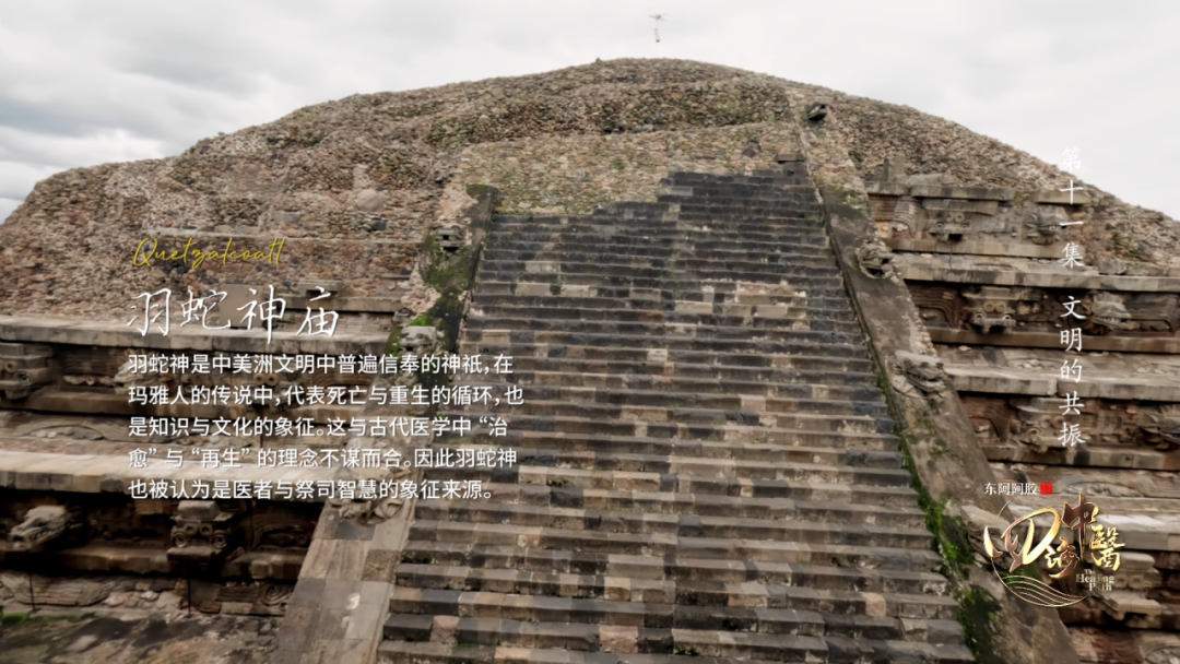 这种对生命本质的探讨贯穿着整个墨西哥之旅。在特奥蒂瓦坎,主持人与墨西哥中医师李美虹、美籍中药学家Eric,共同探讨金字塔、羽蛇神庙为后人留下的光辉灿烂的文化,探寻中墨两国古代医药文明的相似之处。