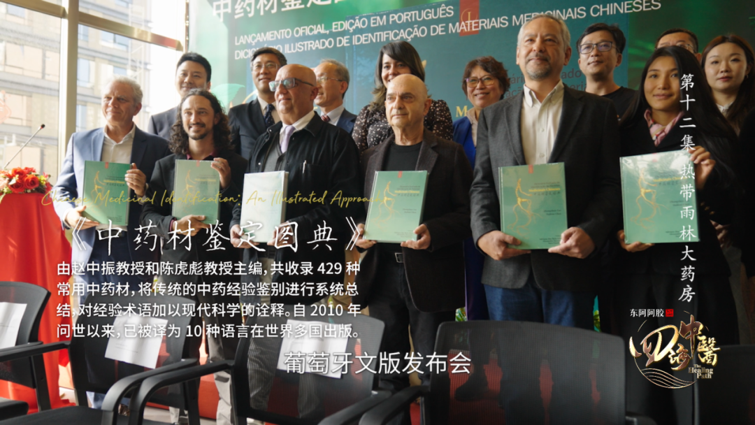 主持人与赵中振教授还探访了当地百年历史的市场,桑叶桑枝、艾草以及来自东方的银杏叶……它们共同勾勒出一幅多元文化交融的生动画面。节目录制期间,赵中振教授所著《中药材鉴定图典》葡文版在巴西正式发布,象征着中医学知识在当地的持续渗透与生长。